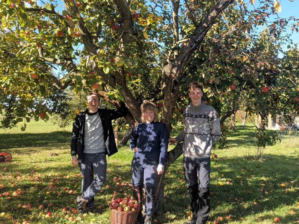 Hallo, wir sind Anna, Philipp und Kilian. Wir sind ausgebildete BaumwartInnen. Unseren Abschluss haben wir an der Obstbaumschnittschule Erfurt absolviert. Unser Ziel ist es, den fachgerechten Schnitt von Obstbäumen zu fördern und damit zur Gesundheit und dem Erhalt von Obstgehölzen beizutragen. Unser Schnitt orientiert sich dabei immer am Wohl des Baums. Darüber hinaus möchten wir mit unserer Arbeit den Lebensraum Streuobstwiese wieder vermehrt in den Fokus rücken und aktiv zu ihrem Erhalt beitragen.
